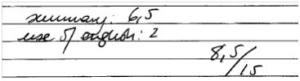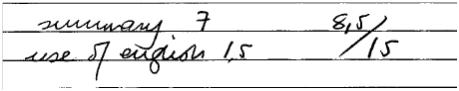2. A final do texto, o examinador conferiu a nota dividida em duas partes: summary (que foi a soma dos pontos atribuídos à numeração 1 a 6) e use of English. Veja três exemplos extraídos dos espelhos dos três candidatos, respectivamente: