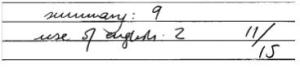 Sendo assim, apreendemos que 12 pontos foram atribuídos a summary – ou seja, à capacidade de o candidato resumir cada um desses seis pontos principais do texto de forma objetiva e concisa – e os outros 3 pontos foram atribuídos a use of English, sendo essa uma nota global de gramática e vocabulário. Isso quer dizer que os erros de precisão gramatical não foram descontados como na Redação (na qual para cada erro o candidato perde entre 0,5 e 1,0 ponto) e que a habilidade principal sendo testada nessa tarefa é a de concisão – ou melhor, a “objetividade, a precisão, a clareza e a concisão do texto”.